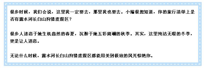 相遇最美人間雪,邂逅露水河長白山狩獵度假區!